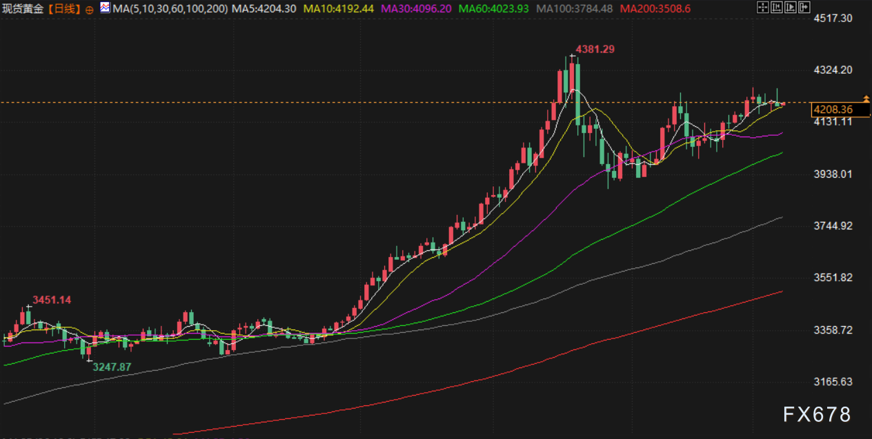 机构预测,金价今年将在每盎司4200至4,500美元区间交投,明年可能进一步升至4500至5000美元。不过,实物需求方面,印度和中国的黄金买盘因等待价格回调而有所减弱。