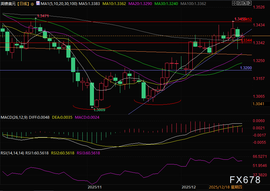 英镑的短线走势还受到美元端的直接压制。周四欧洲交易时段,英镑兑美元汇率短线下跌0.22%,下探至1.3355一线。这背后的核心推手,是即将揭晓的美国11月消费者物价指数数据——市场预期整体通胀率同比增速将从上月的3.0%回升至3.1%,剔除食品与能源的核心通胀同比增速则维持3.0%。