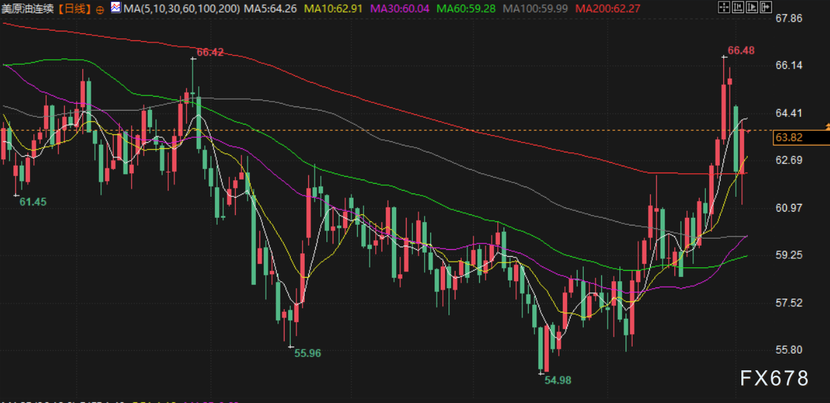 周三(北京时间2月4日)亚市早盘,现货黄金交投于4935美元/盎司附近,现货黄金周二强劲反弹超6%,创下自2008年11月以来的最大单日涨幅,主要受到坚挺基本面支撑下的逢低买盘推动,同时,地缘紧张升温也推迟金价上涨;美原油交投于63.78美元/桶附近,在国际地缘政治风险升温的推动下,油价周二反弹超2%。
